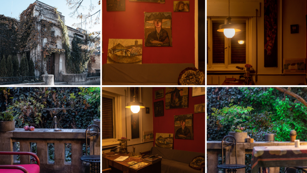 Clădirea are două terase – una la fațada principală și una la cea posterioară. Terasa – grădină, din spatele casei, care abundă în frunze de iederă, te duce cu gândul la serile de primăvară chiar dacă am vizitat acest loc la sfârșit de noiembrie.